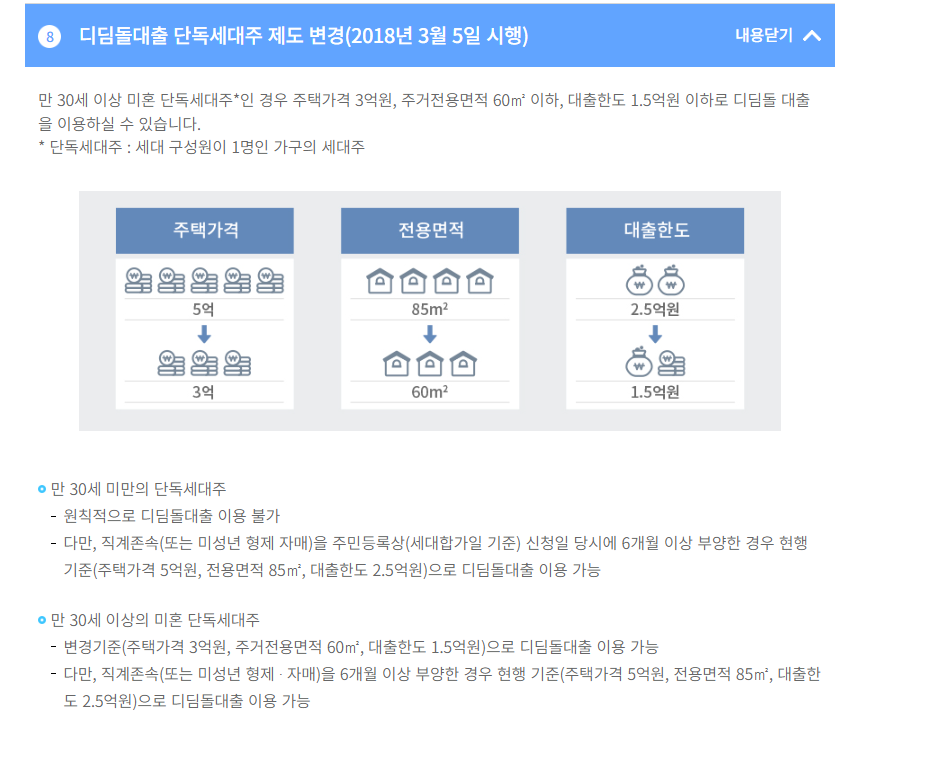 ※ 단독세대주와 관련한 요건은 8. 디딤돌대출 단독세대주 제도변경 참고